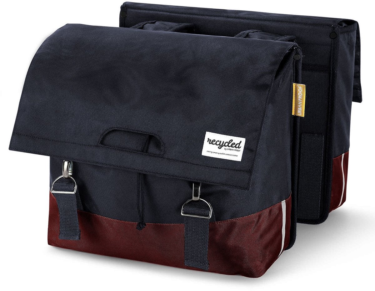 Urban Proof 40L dubbele fietstas is een sterke tas met een verstevigde rug en bodem, gemaakt van gerecycled PET materiaal (RPET). De tas heeft twee ruime opbergvakken met een totale inhoud van 40 liter. Hij is zo gemaakt dat je snel en eenvoudig de tas kan openen en sluiten met de chromen haken. De tas is gemaakt van waterafstotend RPET en heeft aan de binnenkant een waterbestendige voering als extra bescherming voor jouw spullen. Met de daarvoor bestemde riempjes is de dubbele fietstas eenvoudig aan jouw bagagedrager te bevestigen.