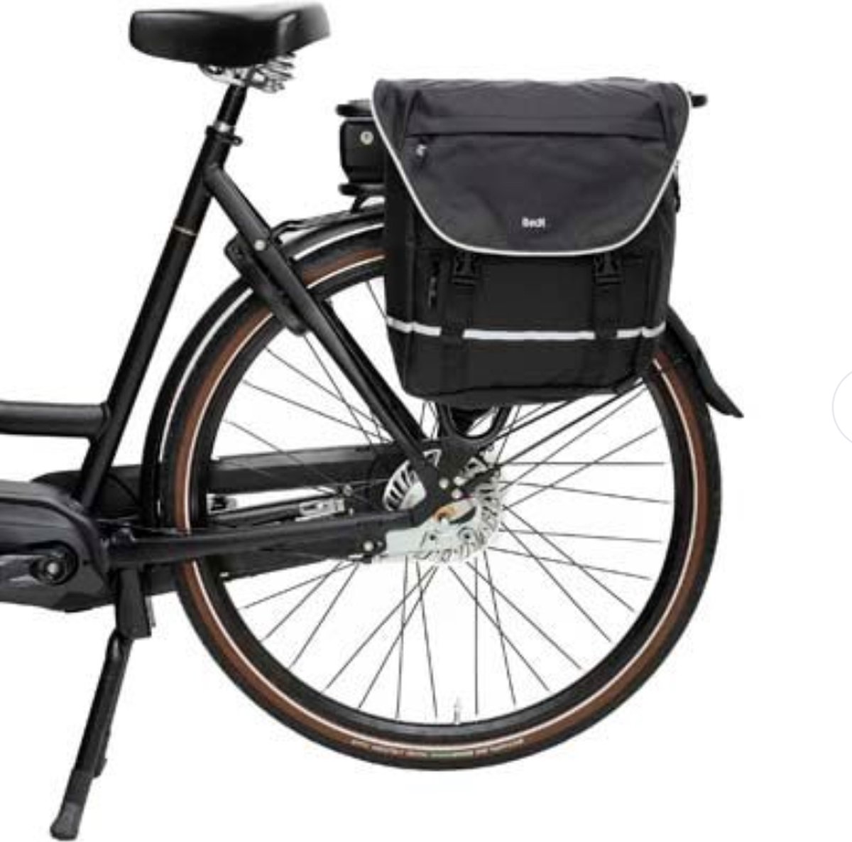 Ook is de tas voorzien van een reflecterende streep voor betere zichtbaarheid.