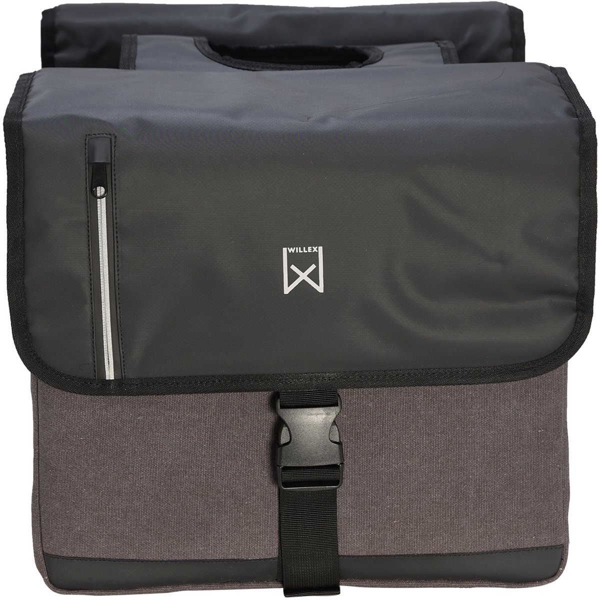 De Willex Dubbele Business fietstas is supersterk en mooi in eenvoud. De twee ruime compartimenten van de tas zijn samen goed voor 30 liter inhoud. De tas is gemaakt van waterdicht katoenen canvas, met reflectie. Het stevige canvas maakt deze dubbele fietstas elegant en sterk tegelijk. Bovendien is dit katoenen canvas waterafstotend. Om inregenen te voorkomen is de klep van de tas voorzien van regenflappen. Ook de binnenkant is bestand tegen vocht, dankzij de voering van waterdichte stof. In de klep van de tas zit een klein opbergvakje met een ritssluiting.