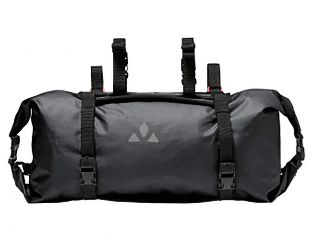 Voor avontuurliefhebbers! Wie ervan houdt om met de fiets onderweg te zijn en voor de overnachting al het noodzakelijke bij zich te hebben, is met deze waterdicht comprimeerbare stuurtas op de juiste weg. De packsack met 13 l is van beide zijden toegankelijk en middels wikkelsluiting waterdicht comprimeerbaar en is uitstekend geschikt voor lichte bepakking en een slaapzak. Met packriemen aan de bovenkant kan extra bagage en zelfs een tent aan de buitenkant worden bevestigd. De bevestiging van de packsack past op alle mountainbikesturen en is met diens breedte van 30cm ook compatibel met alle gangbare gravel- of racefietssturen. Zijn eenvoudige montage vindt plaats via het stuur en de balhoofdbuis. Door de praktische afstandshouders en de in de breedte verstelbare bevestigingen wordt er altijd voldoende vrijheid voor de rem- en, schakelkabels gegarandeerd. Extra, gekleurde horizontale klittenband compressiebanden, evenals een dubbele verticale band, houden de tas schokvrij op zijn plaats op elke onverharde weg. Praktisch feature is de draagriem waarmee de Trailfront gemakkelijk en casual over de schouder kan worden gedragen. Deze stuurtas is niet alleen praktische metgezel voor bikepacking. Hij doet ook heel veel werk op het gebied van milieubescherming, want zowel de bevestigingen als de packsack bestaan voor 100% uit gerecyclede materialen.