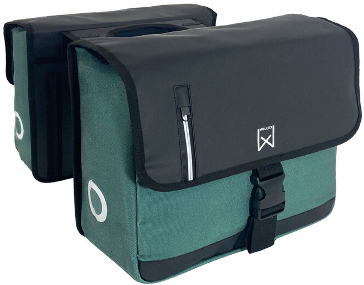 Dubbele businesstas Hunter Green/Black 40L | Supersterke tas, gemaakt van waterafstotend katoenen canvas met waterdichte voeringTwee handige voorvakken met reflecterende ritsOok geschikt voor e-bikesMet opvallende refl ectieVoorbereid voor extra wielbeschermers (los verkrijgbaar)Tas volledig opvouwbaar dankzij opklapbare bodemplaten en vouwbare zijwandenTas houdt zijn vorm door stevige wanden en bodemGeschikt voor MIK® en Rack... lees meer over dit product