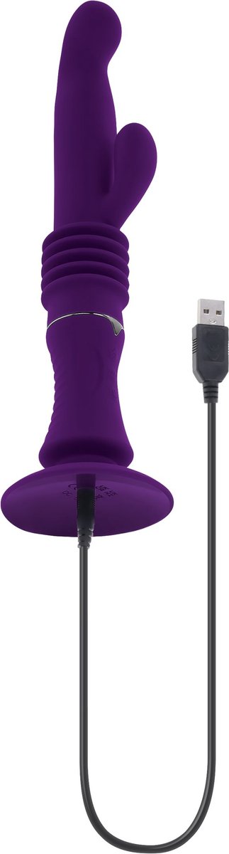 Ervaar onvergetelijk genot met deze krachtige stotende rabbit vibrator. Multi-speed vibraties pulseren door de hoofdschacht en bunny stimulator, en stimuleren je erogene zones terwijl het flexibele siliconenmateriaal meebeweegt met je lichaam. Schakel vervolgens de robuuste stootfunctie in die aanvoelt als de echte sensatie! Tot wel 2,5 cm stootkracht voor een diep gevoel dat je vult met een heerlijk tenen krullend genot. Ontspan je grip rond het getextureerde handvat of gebruik de zuignap voor talloze handsfree mogelijkheden.