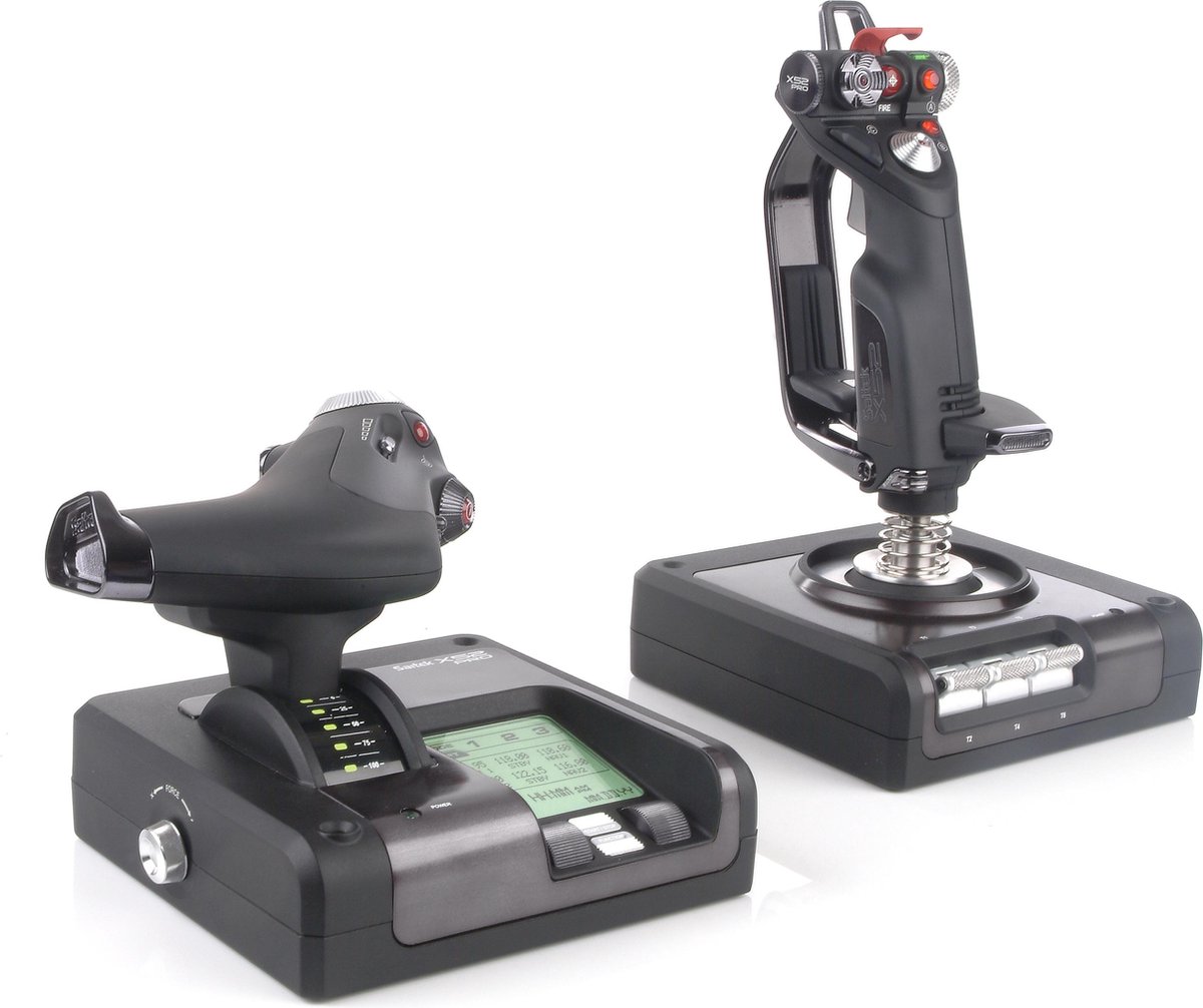De Logitech Saitek X52 PRO FLIGHT is een volledig geïntegreerde hands on stick en throttle flight controller die voldoet aan de eisen van de beste flight simulator piloten. De X52 PRO beschikt over een verbeterd multifunctioneel LCD-scherm dat in-game data toont, een progressieve gashendel met gevoeligheidsaanpassing en een instelbare joystick met een zelf centrerend mechanisme. De X52 PRO heeft alle opvallende kenmerken van de originele X52 en neemt mee naar een heel nieuw level. Een zeer nauwkeurig centreermechanisme zorgt er voor dat de joystick gemakkelijk terugkeert naar de neutrale stand nadat je hem laat gaan. Contactloze technologie op de X- en Y-as verbeteren de controle en levensduur, en de stick wordt bestendiger wanneer het verder uit het midden beweegt. Een vijf-posities handvat aanpassingssysteem beantwoord jouw grip stijl en handgrootte. Om maximaal comfort tijdens lange vluchten te bevorderen, beschikt het handvat van de joystick contouren die harmoniëren met je vingers. De draaimogelijkheid van de joystick voegt een compleet andere dimensie toe aan je simulatievlucht. Ben je meer fan van traditionele controle, dan is er de mogelijkheid om de draaimogelijkheid uit te schakelen en alleen de input voor de X- en Y- as te gebruiken. Ideaal voor gebruik met de Saitek Pro Flight Rudder Pedals (apart verkrijgbaar). Het LCD-scherm met instelbare achtergrondverlichting stelt je in staat om informatie over je knop-configuratie te laten zien in slechts een oogopslag. Daarnaast is er de mogelijkheid om radio informatie in Flight Simulator 2020, FSX, X-Plane en Prepar3D en de meeste andere flight sim software te manipuleren. Je kan dan gebruik maken van de knoppen onder het display (MFD). Met de downloadbare Software Development Kit kan je je eigen MFD interacties creëren.