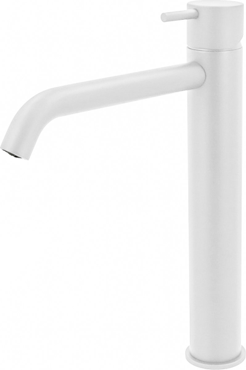 De kraan heeft de hoogte van 28.6 cm. Ook heeft de kraan een keramisch binnenwerk, dit houdt de hendel jarenlang soepel in zijn beweging om water door te laten en de kraan goed te sluiten. De praktische kraan is afgewerkt in een mat witte kleur en wordt geleverd exclusief waste. Ook verkrijgbaar in meerdere kleuren!
