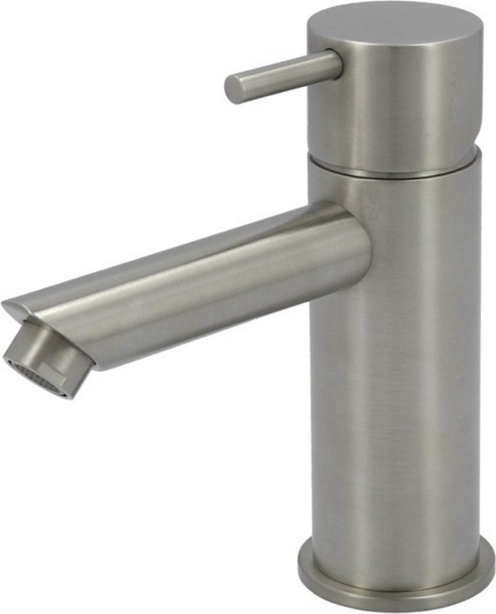 Hotbath Cobber lage wastafelmengkraan met rechte uitloop zonder waste geborsteld nikkel CB003SGN