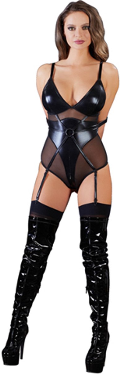 Cottelli Collection Bondage Body Met Open Cups En Jarretels - Zwart