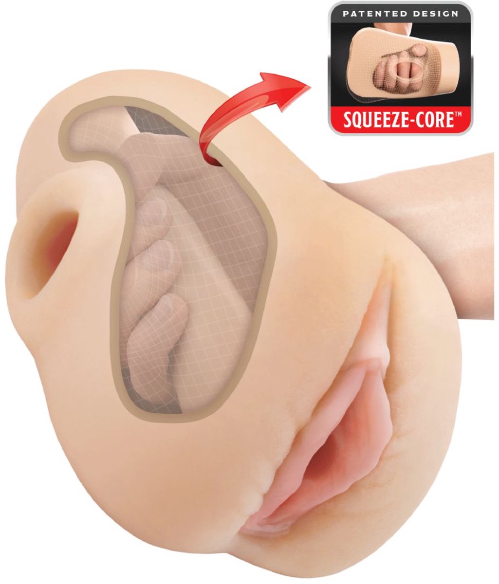 De masturbator Pussy Pounder Squeeze Stroker van PDX Plus in vagina-look maakt indruk met zijn innovatieve bediening en hoog detailniveau. Het gepatenteerde ontwerp van de knijpkern biedt een flexibele holte die zich perfect aanpast aan de hand, evenals een binnenste genotskanaal dat afzonderlijk kan worden geknepen. Volledige controle tijdens een handjob met een absoluut echt gevoel en de perfecte grip!