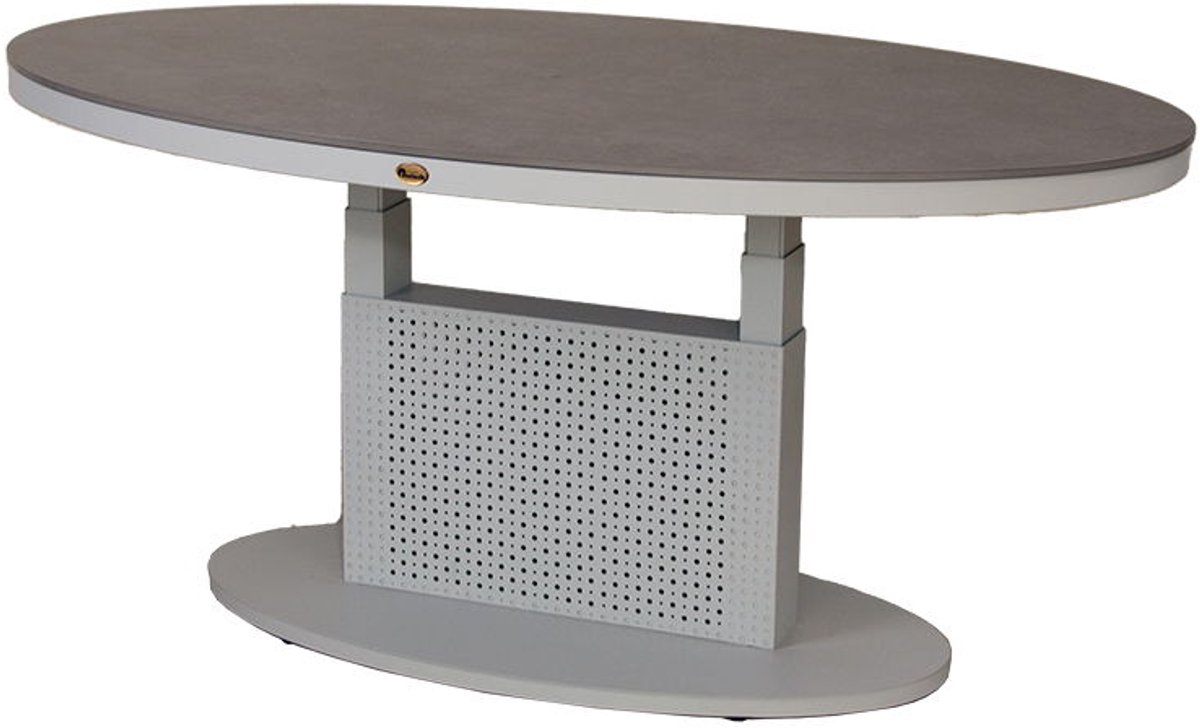 Pine Valley verstelbare lounge tafel mist grey 150 x 90 cm. De lounge tafel Pine Valley is een robuuste tafel van aluminium met een mooi tafelblad van keramiek. De aluminium constructie geeft de tafel stevigheid en duurzaamheid. Daarnaast is de tafel in hoogte verstelbaar.