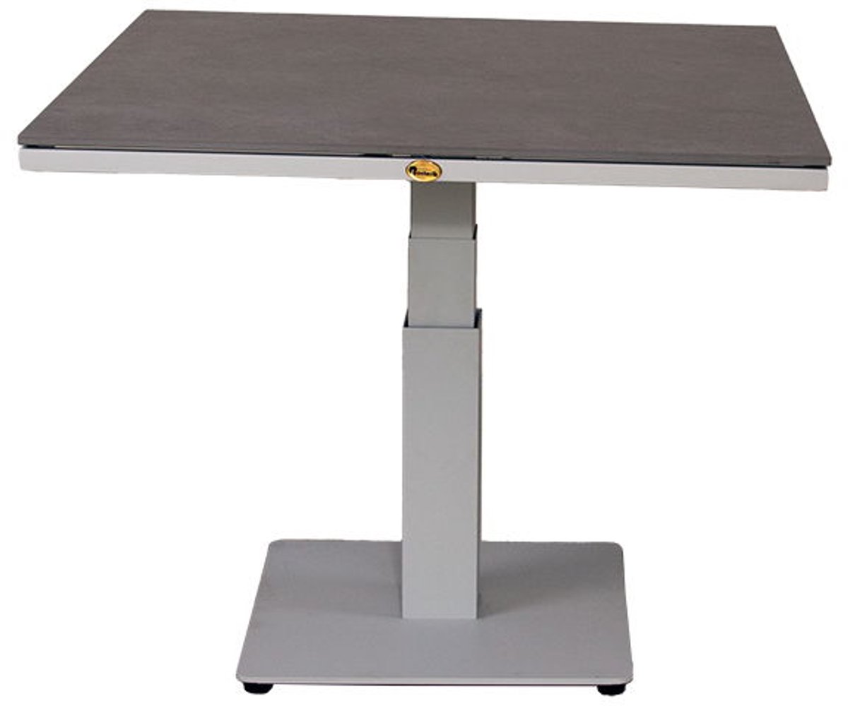 Pine Valley verstelbare lounge tafel mist grey 90 x 90 cm. De lounge tafel Pine Valley is een robuuste tafel van aluminium met een mooi tafelblad van keramiek. De aluminium constructie geeft de tafel stevigheid en duurzaamheid. Daarnaast is de tafel in hoogte verstelbaar.