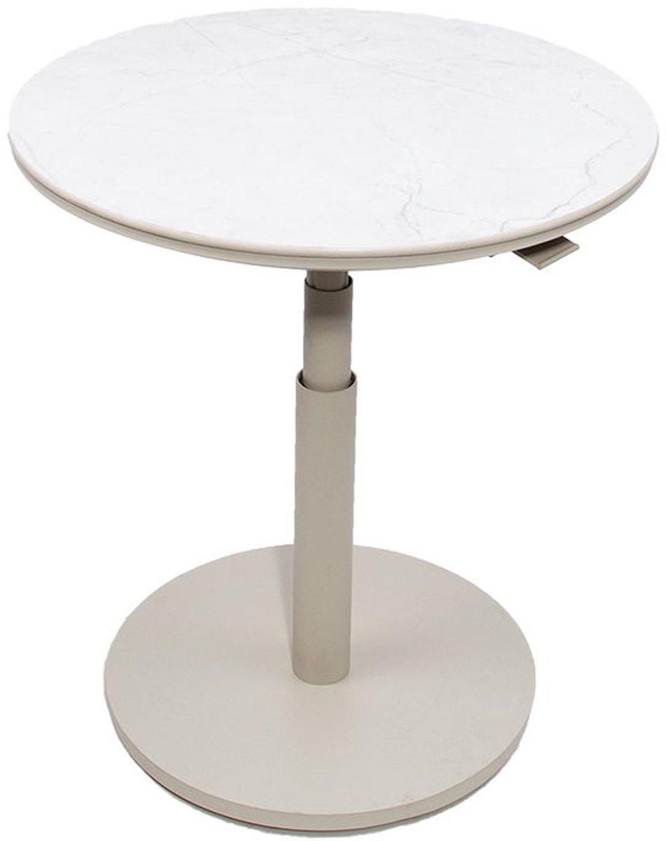 Padroni verstelbare bijzettafel sunny crème stone dia. 59 cm. De bijzettafel Padroni is gemaakt van aluminium en afgewerkt met een mooi tafelblad van gesinterd steen. Daarnaast is de bijzettafel in hoogte verstelbaar.