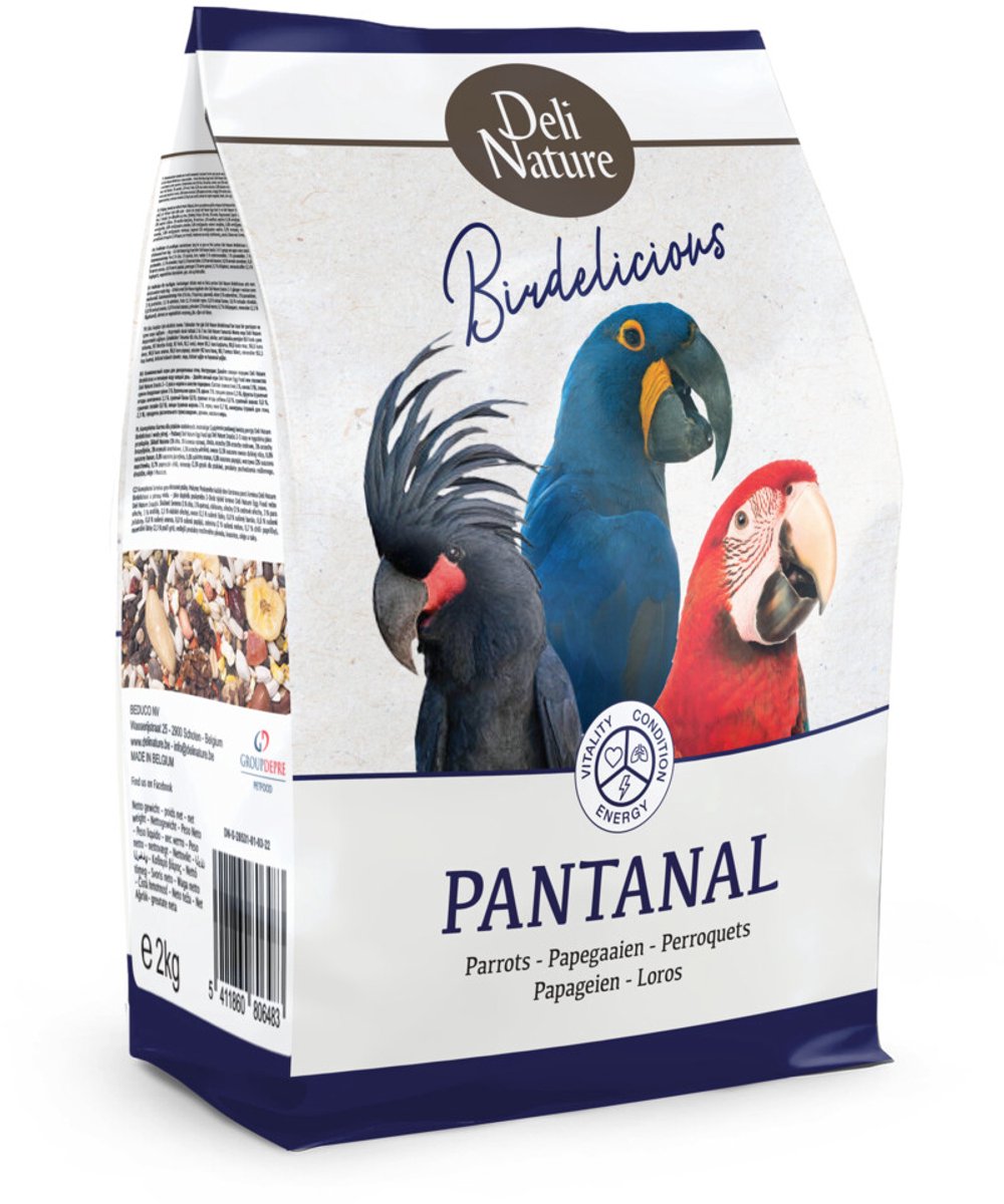 Deli Nature Papegaaien Pantanal BirdelicousDeli Nature Papegaaien Pantanal Birdelicous is een unieke, uitgebalanceerde mengeling voor alle grote ara's, palmkaketoes, goudparkieten. Met een hoog aandeel noten (12%) zoals paranoten, walnoten, cedernoten, gepelde pinda's. Bevat zwarte zonnebloempitten (= vetrijkste variant) en mariendistel. Met fruit zoals papaya, ananas, rozijnen en geextrudeerde pellets voor extra vitaminen met aminozuren. Bevat grit en is verkrijgbaar in 2,5 en 12,5 kg. * Unieke, uitgebalanceerde mengeling voor alle grote ara's, palmkaketoes en goudparkiet * Met een hoog aandeel noten (12%) zoals paranoten, walnoten, cedernoten en gepelde pinda's * Met zwarte zonnebloempitten (= vetrijkste variant) en mariendistel * Met fruit zoals papaya, ananas en rozijnen * Met geextrudeerde pellets voor extra vitaminen, aminozuren * Met grit * Verkrijgbaar in 2,5 en 12,5 kg