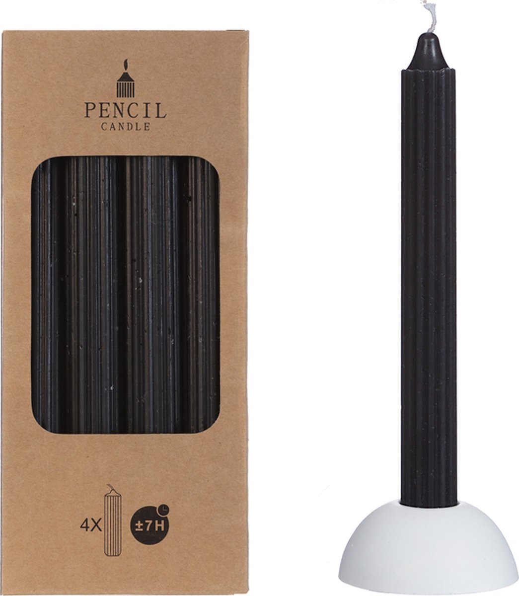 Hortus Potlood kaarsen set 4 stuks dia. 2.2 x H 20 cm - - Zwart