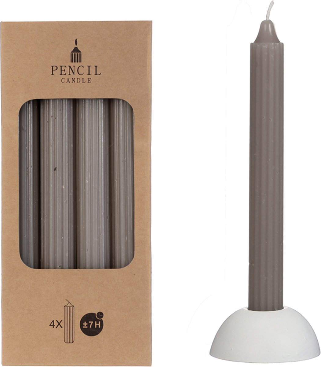 Potlood kaarsen set 4 stuks dia. 2.2 x H 20 cm grijs. Ontdek de veelzijdige kaarsencollectie van Hortus en voeg een vleugje sfeer toe aan elke hoek van je huis.