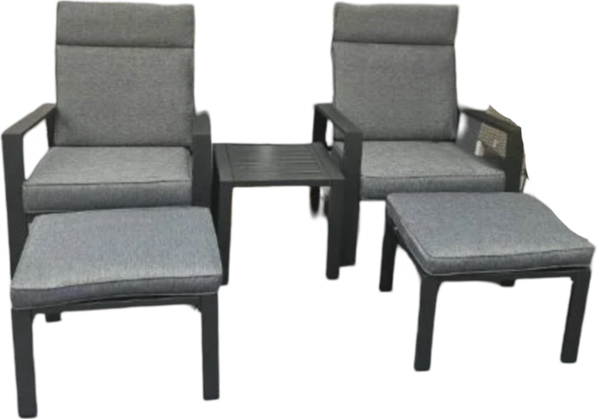 Reno 5-delige tuinset. Creëer de perfecte buitenoase met een stijlvolle en comfortabele tuinset, ideaal voor zowel ontspanning als gezellig samenzijn. Of het nu gaat om een intiem ontbijt of een feestelijk diner, onze tuinsets bieden de ultieme setting voor elk moment in de frisse lucht.