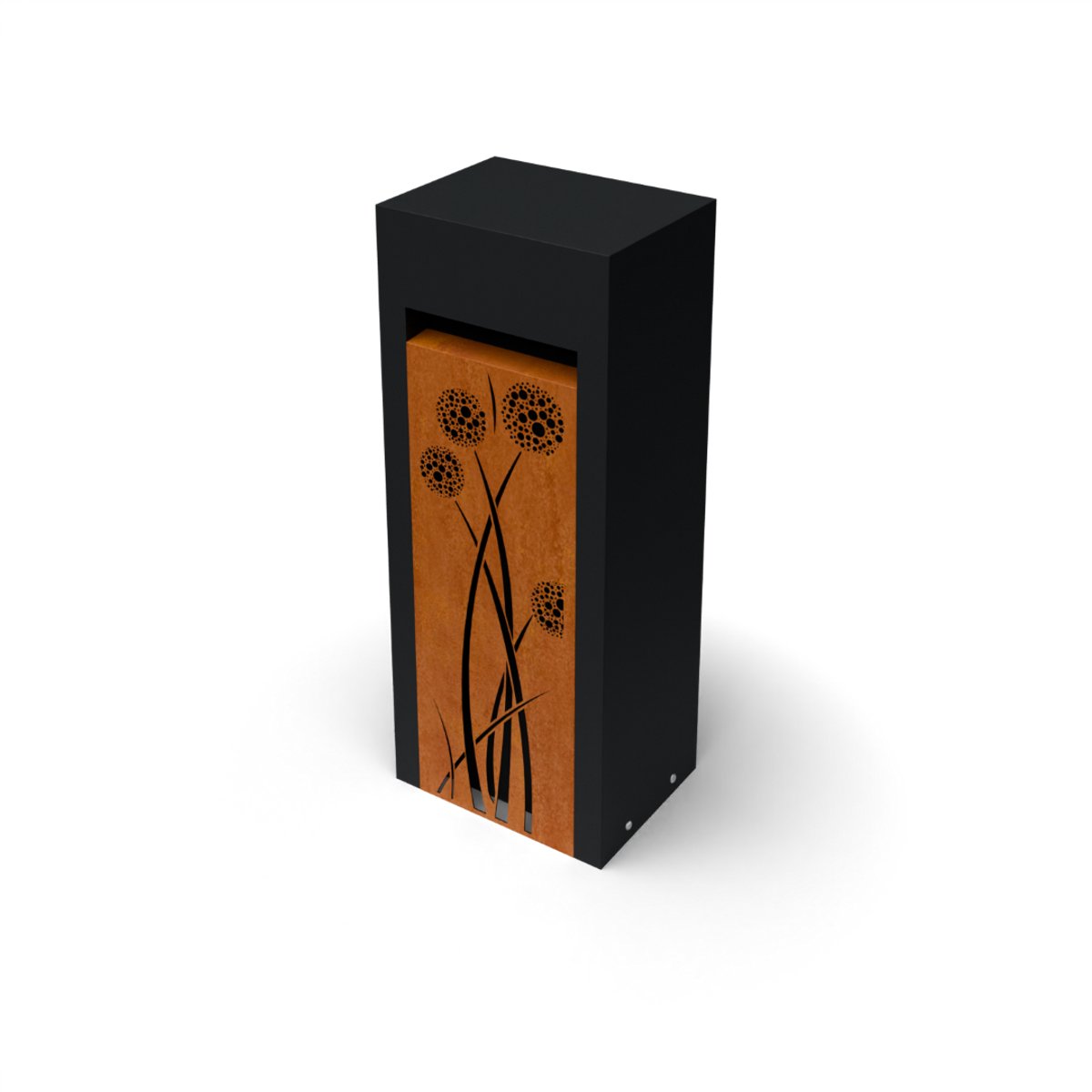 Geroba Brievenbus Libus Combo Corten L30 x B40 x H100 met Allium motief - - Zwart