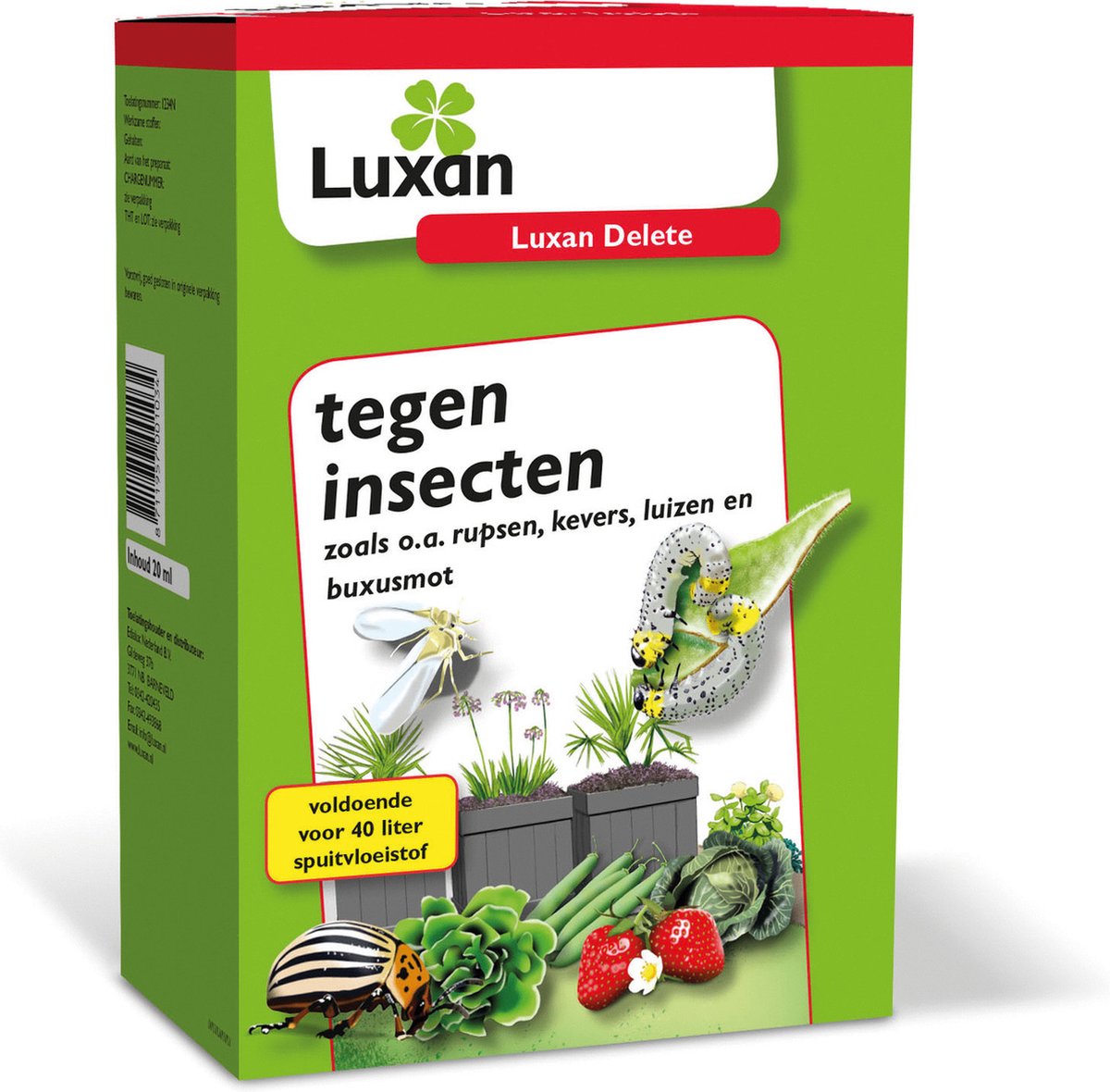 - Luxan Delete is bijzonder goed werkzaam tegen een reeks van bladetende insecten zoals rupsen, en kevers.