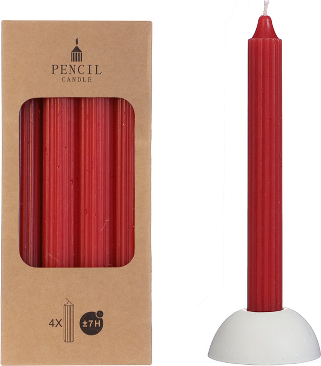 Hortus Potlood kaarsen set 4 stuks dia. 2.2 x H 20 cm - - Rood