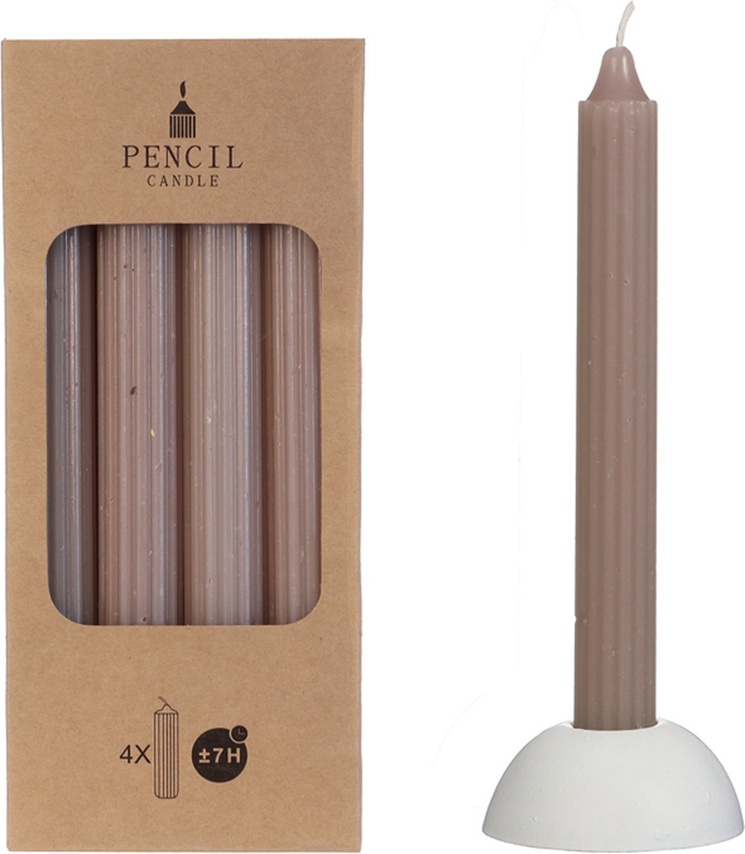 Hortus Potlood kaarsen set 4 stuks dia. 2.2 x H 20 cm taupe - - Bruin