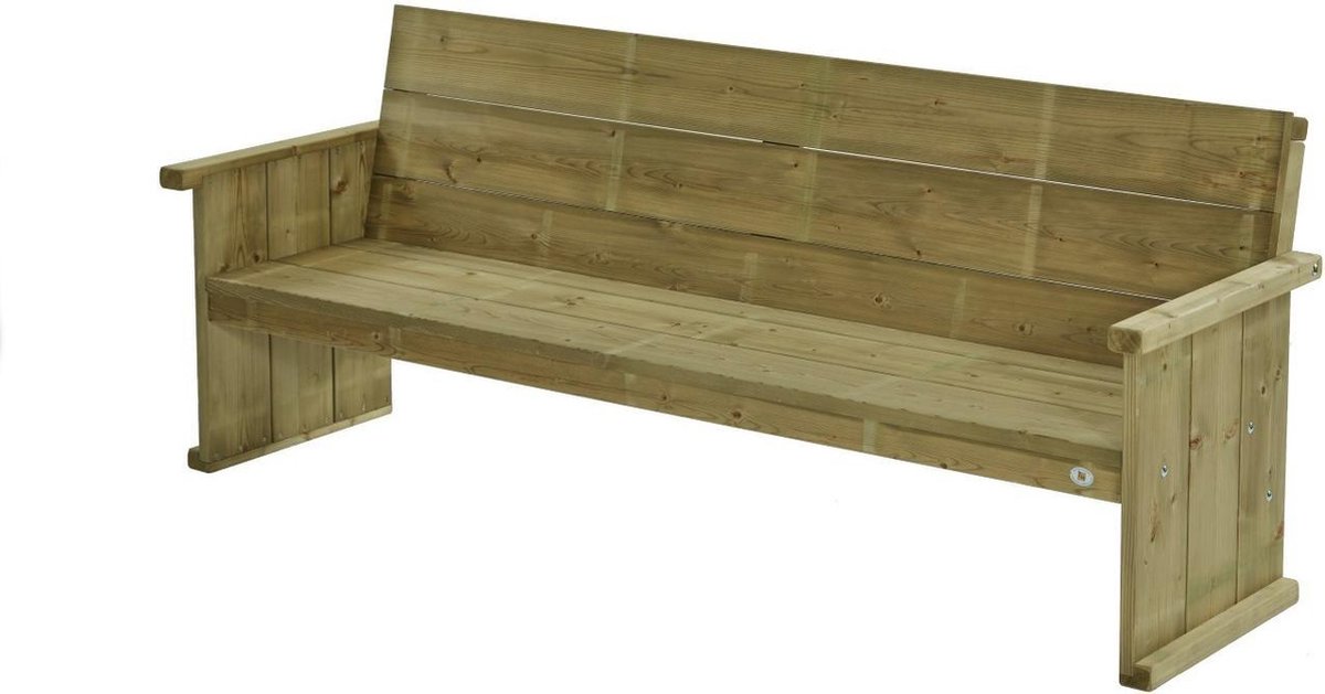 Bank Lisse 230cm is gemaakt van dikke planken. Daardoor is deze 4-zitsbank sterk en stevig. Deze bank heeft de uitstraling van steigerhout, echter de planken zijn glad geschaafd, geïmpregneerd en de uiteinden zijn geschuurd, dus splintervrij. Deze eigenschappen zorgen voor een hoog gebruikscomfort. Elk onderdeel is per stuk, onder druk geïmpregneerd, door deze verduurzamingsmethode krijgt het hout een langere levensduur en tre... lees meer over dit product