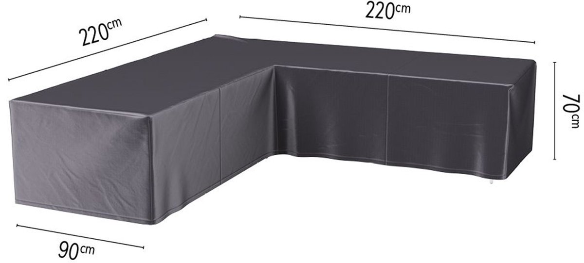 De Platinum AeroCover loungebankhoes L-vorm (220x220x90xH70cm) biedt betrouwbare bescherming voor loungebanken in L-vorm 220x220x90xH70 met een 90° hoek. Het ademende membraan helpt vocht naar buiten te transporteren en houdt tegelijkertijd vuil, stof en regen van buitenaf tegen. Dit is erg belangrijk om schimmelvorming op je loungebank tegen te gaan en de levensduur ervan te verlengen.