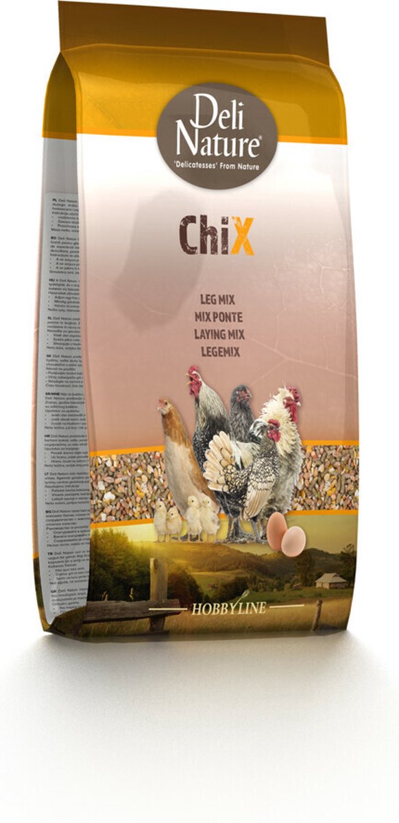 Deli Nature Chix Leg Mix 4 kgDe Chix Leg Mix van Deli Nature is een gebroken graanmengeling. Deze graanmengeling is verrijkt met een leg korrel voor krielen, kleinere hoenders en legkippen. Deze mengeling bevat naast gebroken maïs en energie- en eiwitrijke granen en zaden zoals tarwe, milo, gebroken groene erwten en cardi. * Verrijkt met 30% hoogwaardig legkorrel * Geschikt voor krielen, kleine hoenders en legkippen * Verkrijgbaar in 4 kg