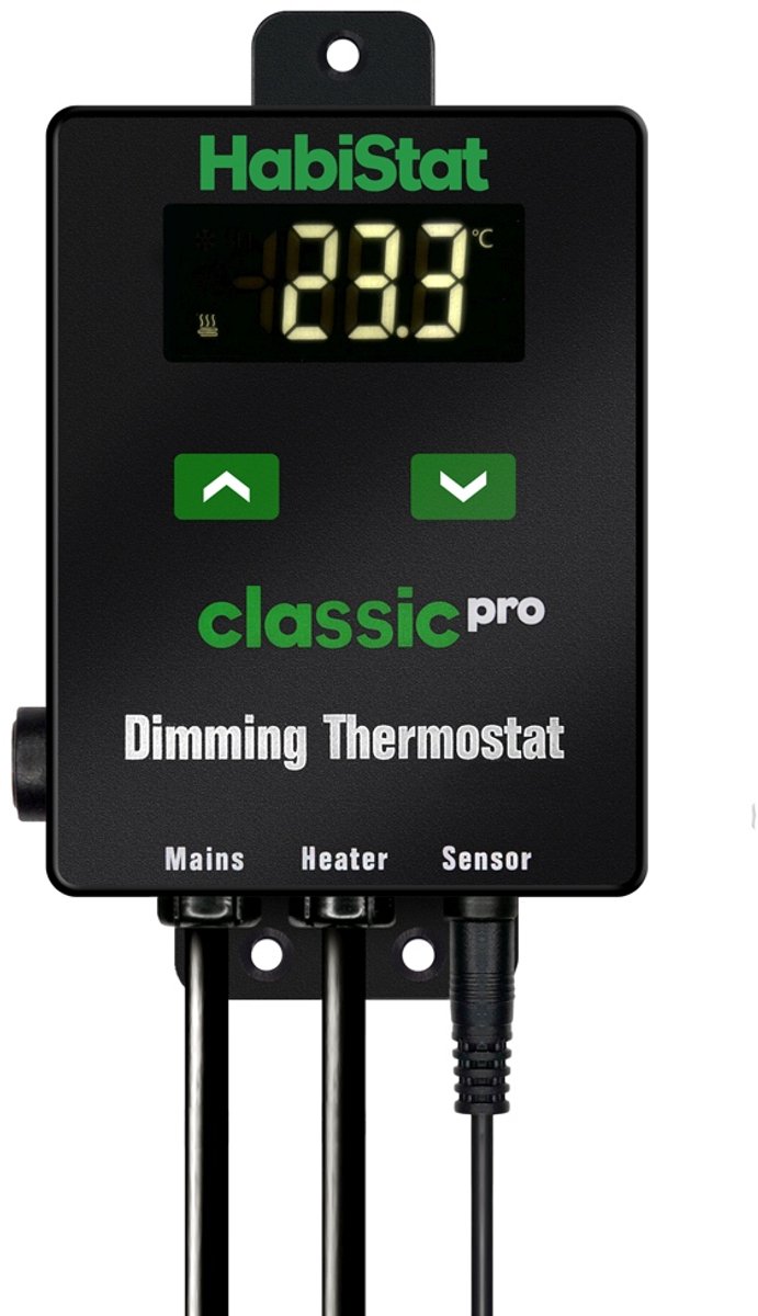 Met de HabiStat Dimmer Thermostaat kun je eenvoudig de juiste temperatuur behouden voor je terrarium en ervoor zorgen dat je dieren zich in een veilige en comfortabele omgeving bevinden.
