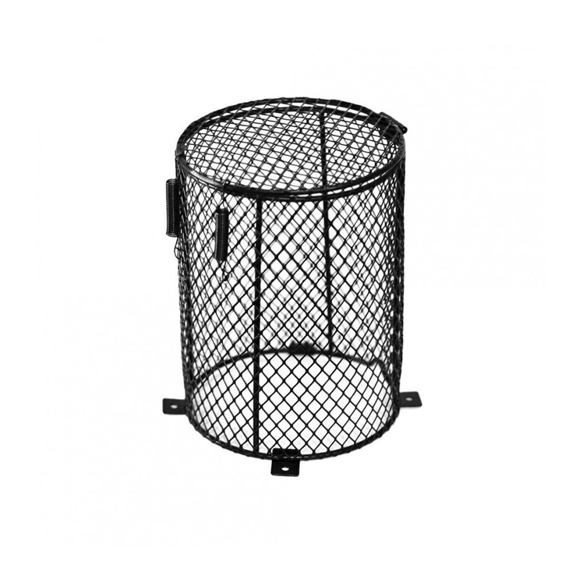 Verwarmer beschermer rond 12x16cm is een stevige metalen veiligheidskooi voor warmtelampen en kleinere keramische verwarmers in het terrarium. Ontwikkeld voor reptielen, amfibieën en andere terrariumbewoners en ideaal voor het veilig afschermen van hete lampen aan het plafond van een houten of glazen terrarium. Dankzij het gepoedercoate gaas, de geveerde scharnierdeur en de vier bevestigingspunten biedt deze beschermer optimale bescherming tegen verbranding, terwijl warmte en licht vrij kunnen circuleren.