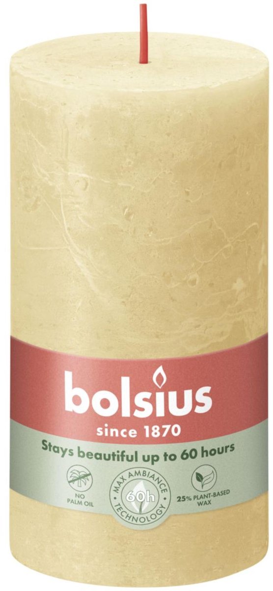 Ben jij op zoek naar wat extra kleur in je huis? Dan is deze Bolsius Stompkaars Rustiek Oat Beige - 13 cm / ø 7 cm ideaal voor jou! De stompkaars heeft een luxe uitstraling en is 100% palmolie-vrij. Daarnaast brand de kaars tot wel 60 uur. De Bolsius Stompkaars Rustiek Oat Beige - 13 cm / ø 7 cm is perfect te combineren met de overige kaarsen van Bolsius. Creëer meer sfeer in huis met de Bolsius Rustiek kaarsen!