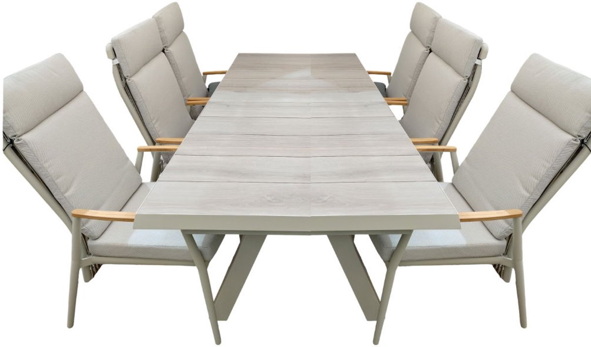 Deze 7-delige Penedes Tensil dining set bevat een royale tafel en zes comfortabele stoelen in een harmonieus ontwerp.