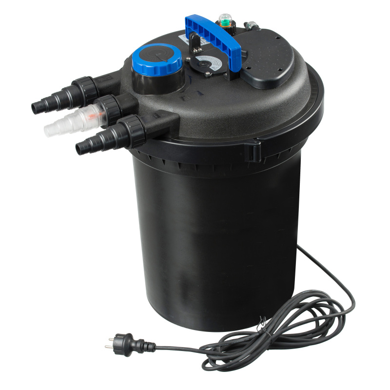 De Ubbink BioPressure II 18000 is een gebruiksvriendelijk en eenvoudig te plaatsen drukfilter (weerstand 0,49 bar) voor vijvers met een inhoud van 10000 tot 18000 liter. In tegenstelling tot zwaartekrachtfilters gebruikt het BioPressure II-drukfilter de volledige pompdruk om het water door het filter te persen. Het gezuiverde water kan vervolgens tot een hoogte van 1,50 meter worden opgevoerd, bijvoorbeeld naar het hoger geleg... lees meer over dit product