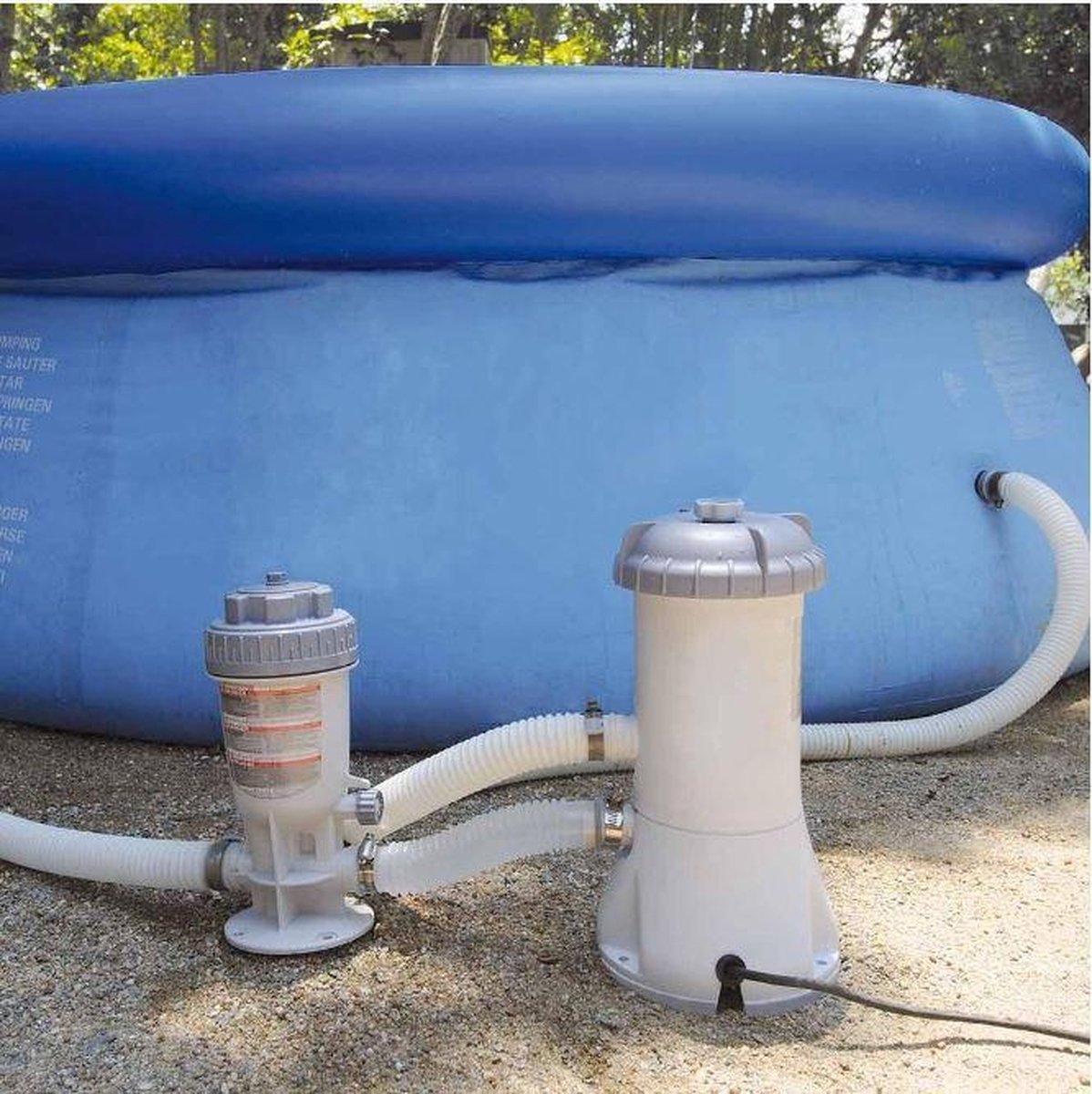 1. Installeer tussen de filterpomp en het zwembad.