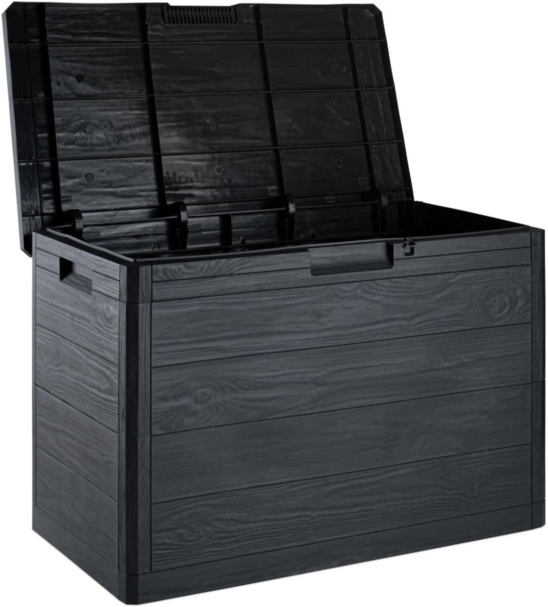 Praktische inhoud van 160 liter Stijlvolle en natuurlijke houtlook afwerking Robuust, onderhoudsvrij en waterafstotend Eenvoudige montage en afsluitbaar . lees meer over dit product