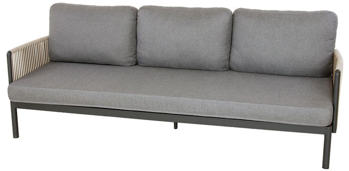 Sidney lounge 3-zitsbank midnight grey. De 3-zitsbank Sidney is gemaakt van een aluminium frame en afgewerkt met een mooi 3 kleurig wicker. De lounge bank wordt geleverd inclusief kussens.