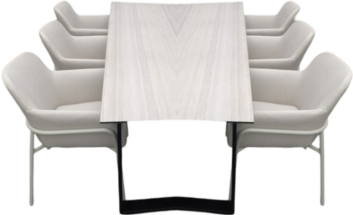 Set van Teeburu tafel 240x100x76 cm travertin en 6 Take stoelen salix/wheat Yoi - Yoi - Grijs