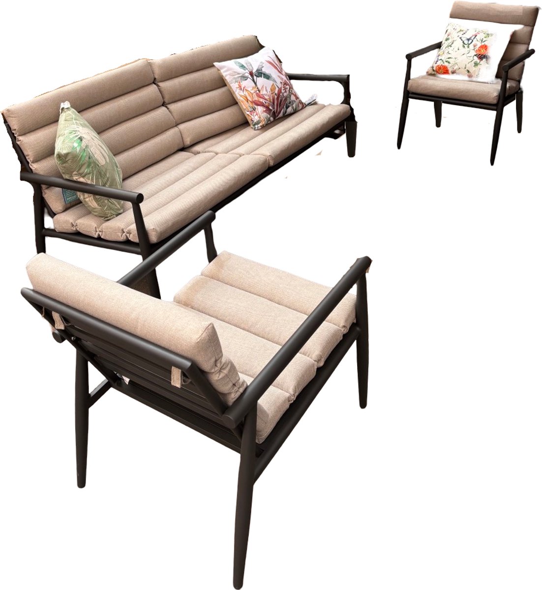 Citrus loungeset 4-delig. De set bestaat uit een bank (L 165 x B 67 x H 80 cm),twee fauteuils (L 60 x B 67 x H 80 cm) en een tafel (L 120 x B 60 x H 40 cm) voor extra gebruiksgemak.