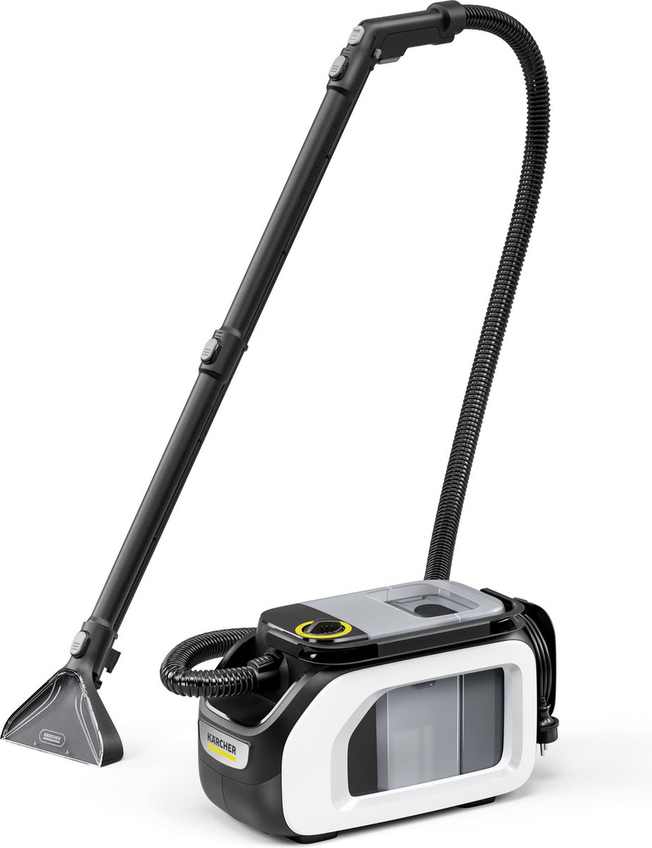 Dieptereiniging tot in de vezels en compact design: de SE 3 Compact Home Floor sproei-extractiereiniger is een krachtige en energiezuinige oplossing voor het reinigen van textieloppervlakken. Dankzij het compacte design kan het apparaat ruimtebesparend worden opgeborgen en is het snel klaar voor gebruik wanneer het nodig is voor een grondige en comfortabele vezeldiepe reiniging. Vuil wordt snel en effectief verwijderd van gestoffeerde meubels en tapijten. De flexibele zuigslang en lange kabel garanderen een hoog niveau van comfort, flexibiliteit en bewegingsvrijheid. De innovatieve 2-in-1 sproei-extractie sproeimond XXL maakt in combinatie met de verlengbuizen een comfortabele, rechtopstaande reiniging van middelgrote tapijten mogelijk. Gebruikt op de handgreep zelf, kan de sproei-extractiesproeikop grotere zachte meubels twee keer zo snel reinigen als een conventionele meubelsproei-extractiesproeikop. Met praktische opbergmogelijkheden op het apparaat zijn alle accessoires altijd bij de hand. Het 2-in-1 tanksysteem zorgt ervoor dat gebruikers niet in contact hoeven te komen met vuil. En als de reiniging is voltooid, overtuigt de sproei-extractiereiniger nog verder met zijn hygiënische systeemreinigingsfunctie om de vorming van bacteriën en geuren in het apparaat te voorkomen. Inclusief meubelstofzuigmond, kierenzuigmond en reinigingsmiddel.