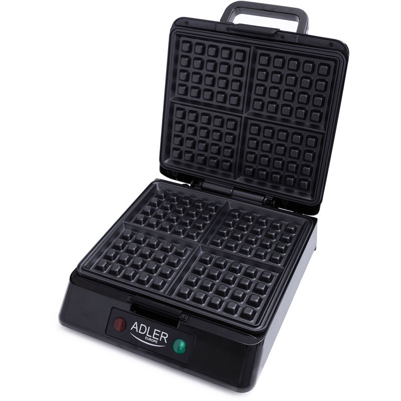 Versgebakken wafels zijn een tractatie als dessert of als snack. Met de 1500W Adler AD 3036 wafelijzer kunt 4 krokante wafels tegelijk bereiden. De verwarming-platen zijn voorzien van een speciale non-stick coating waardoor de wafels gemakkelijker uit te nemen zijn. Bovendien vergemakkelijkt dit het schoonmaken van het wafelijzer. De behuizing blijft tijdens het gebruik koel.Geniet van uw verse wafels met vrienden of familie! ... lees meer over dit product