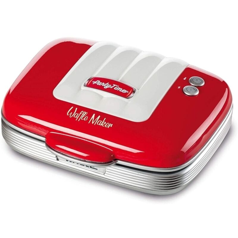 Met het Party Time Wafelijzer 1973/01 is elke dag "Happy Days". Heerlijke wafels met chocolade, zomerse wafels met vers fruit en slagroom, hartige eivrije wafels met zalm en roomkaas. Hoe je ze ook lekker vindt, wafels zijn perfect voor elk moment van de dag: ontbijt, lunch, middagsnack of diner. Met het Party Time Wafelijzer 1973/01 van Ariete maak je je favoriete wafels thuis in slechts een paar minuten, dankzij de anti-aanbakplaten die speciaal zijn ontworpen om de klassieke textuur van wafels te krijgen. De wafelmaker heeft het onmiskenbare design van de Party Time-lijn van Ariete: vloeiende lijnen en popartkleuren die doen denken aan de Amerikaanse diners uit de jaren 1950 en de Happy Days. Ontdek de hele Party Time collectie: tover je keuken om tot een typisch Amerikaanse diner en maak met veel plezier popcorn, crêpes, wafels en suikerspinnen. Plezier gegarandeerd!