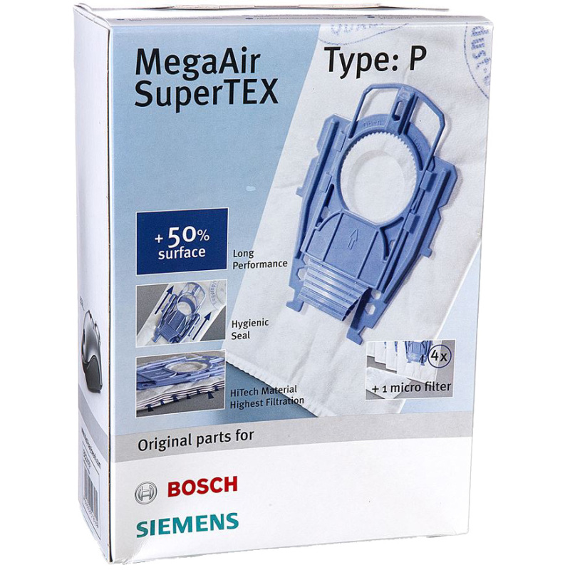 Stofzuigerzak Type P van synthetisch vliesmateriaal voor de hoogste filterresultaten,50% meer oppervlak, waardoor de stofzak langer gebruikt kan worden. De stof-afsluiting maakt een hygiënische stofzakvervanging mogelijk. Inhoud: 4 stofzakken + 1 Micro-Hygiënefilter. Geschikt voor de modellen: BOSCH: BSG8.SIEMENS: VS08... lees meer over dit product