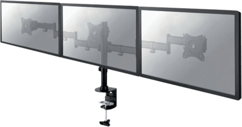 Met deze Neomounts monitorarm, model NM-D135D3BLACK, bevestig je drie flatscreen monitoren aan het bureau via een bureauklem of bladdoorvoer. Door gebruik te maken van een monitorarm profiteer je optimaal van de mogelijkheden van jouw monitor. De monitorarm is eenvoudig in hoogte en diepte te verstellen. Daarnaast kan je het scherm kantelen, zwenken en roteren. Hierdoor creëer je de ideale ergonomische werkhouding. Dit verkleint de kans op nek- en rugklachten. Kabels zijn netjes weg te werken aan de onderzijde van de horizontale arm. De NM-D135D3BLACK heeft vier draaipunten en is geschikt voor schermen t/m 27" (69 cm). Het draagvermogen van de arm is 8 kg per scherm. Dit product is geschikt voor schermen met een VESA gatenpatroon van 75x75 mm of 100x100 mm. Heb je een afwijkend (groter) gatenpatroon, dan kan dit worden opgelost met een van de VESA verloopplaten.
