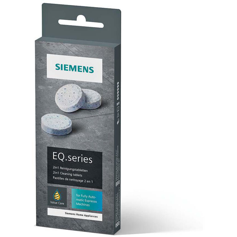 Een grondige schoonmaakbeurt van je volledig automatische espressoapparaat is essentieel voor een hoge kwaliteit van je koffie. Daarom heeft Siemens de onderhoudsset voor EQ series ontwikkeld - het automatische reinigingsprogramma van Siemens volautomatische espressomachines. De set zorgt voor een optimale verwijdering van koffieoliën uit de zetgroep zodat jij weer kan genieten van de beste smaak en die heerlijke aroma`s kan ervaren. De set bestaat uit tien reinigingstabletten.
