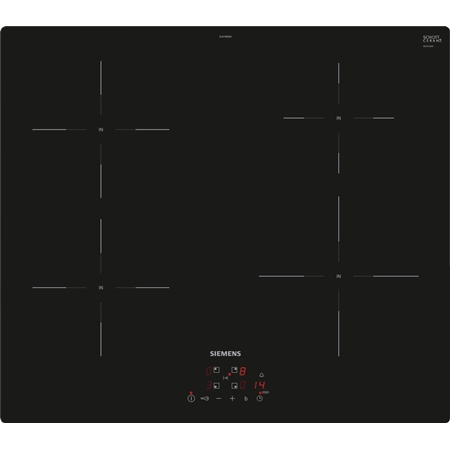 Deze Siemens EU61RBEB5D inductie kookplaat heeft 4 kookzones en is makkelijk te bedienen met een simpele aanraking. Iedere kookzone is apart in te stellen en is voorzien van powerBoost. De PowerBoost-functie is ideaal wanneer je water snel aan de kook wilt brengen. Daarnaast beschikt deze Siemens kookplaat over een kookwekker waarmee kookzones automatisch en veilig worden uitgeschakeld wanneer de tijd is verstreken. Ook de kinderbeveiliging geeft een veilig gevoel, hiermee worden alle functies van de kookplaat geblokkeerd. De kinderbeveiliging wordt pas uitgeschakeld als de knop een paar seconden wordt ingedrukt.