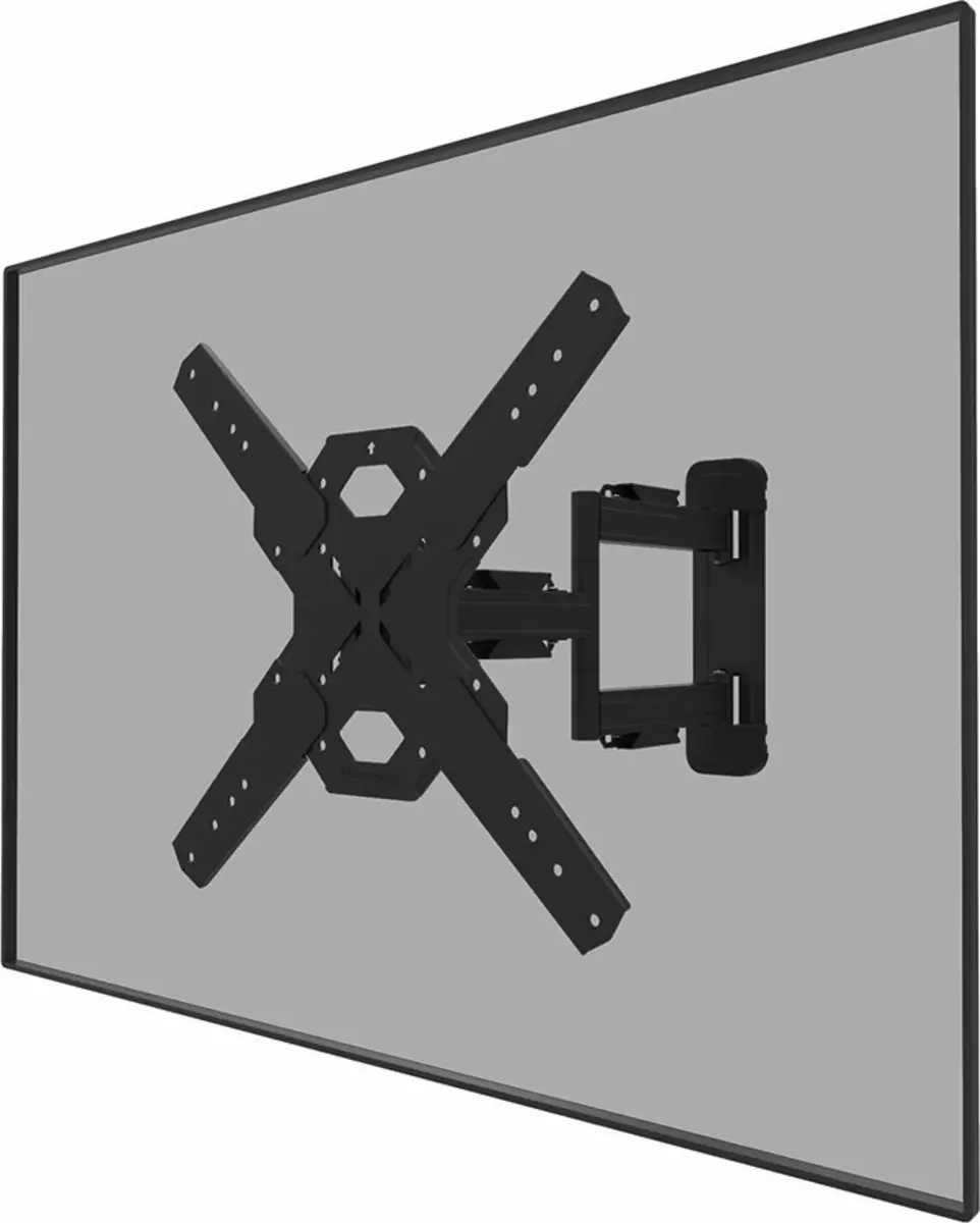 De Neomounts Select WL40S-850BL14 is een full motion wandsteun voor flat screens tot 65" met een maximaal draagvermogen van 40 kg. Door de veelzijdige kantel- (14°) en zwenktechnologie (45°) creëer je de optimale kijkhoek. Voor de perfecte installatie is niveauverstelling beschikbaar. De WL40S-850BL14 heeft een diepte van 4,7-55,5 cm en is geschikt voor schermen met VESA gatenpatroon 100x100 tot 400x400mm. De wandsteun is voorzien van een Easy-release systeem, waarmee je de tv in een oogwenk kunt bevestigen. Een losse waterpas wordt meegeleverd, evenals een bevestigingssjabloon, om eenvoudige installatie van de steun te garanderen. De steun is voorzien van hoogwaardig stalen kabelmanagement, zodat eventuele losse kabels aan de achterkant van het scherm vastgezet kunnen worden.