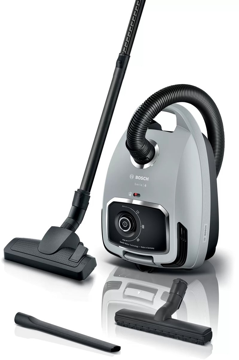 Bosch BGL6X3001 Serie 6 stofzuiger 600 Watt vermogen Max. 12 liter stofbakcapaciteit HEPA-Filter H13 Wasbaar Vloermondstuk omschakelbaar Kierenmondstuk Parket/harde vloeren mondstuk/borstel Actieradius: 12 m Kleur: grijs/zwart lees meer over dit product