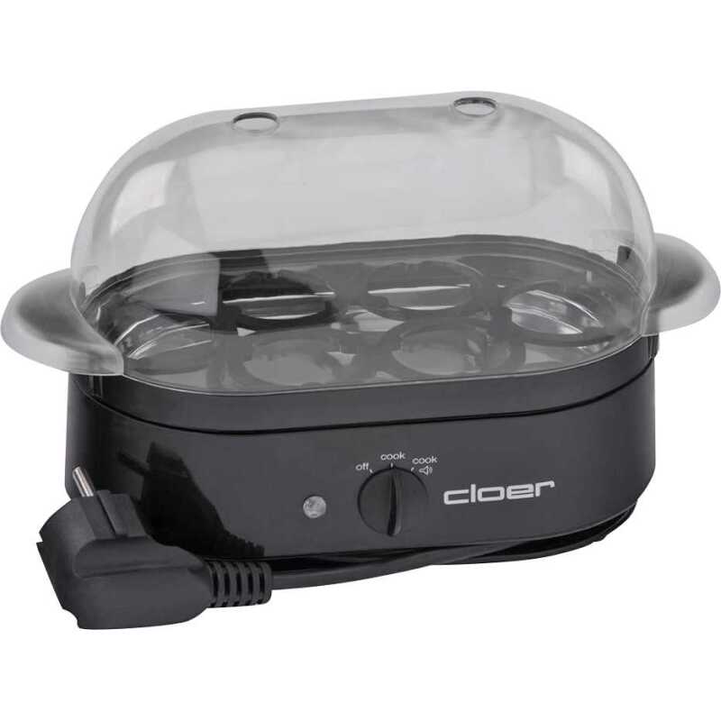 - Je meet de juiste hoeveelheid water af met de maatbeker, giet dit in de eierkoker, zet de eieren in de houder erbovenop en start het kookproces. Als het water verdampt is klinkt er een signaal zodat je weet dat je eitjes gereed zijn. Om te voorkomen dat je eieren breken zit er in de bodem van de maatbeker een eierprikker. De losse delen zijn vaatwasmachine bestendig en voor een optimale reiniging is de bodemplaat van roestvrij staal, dus gemakkelijk schoon te houden.