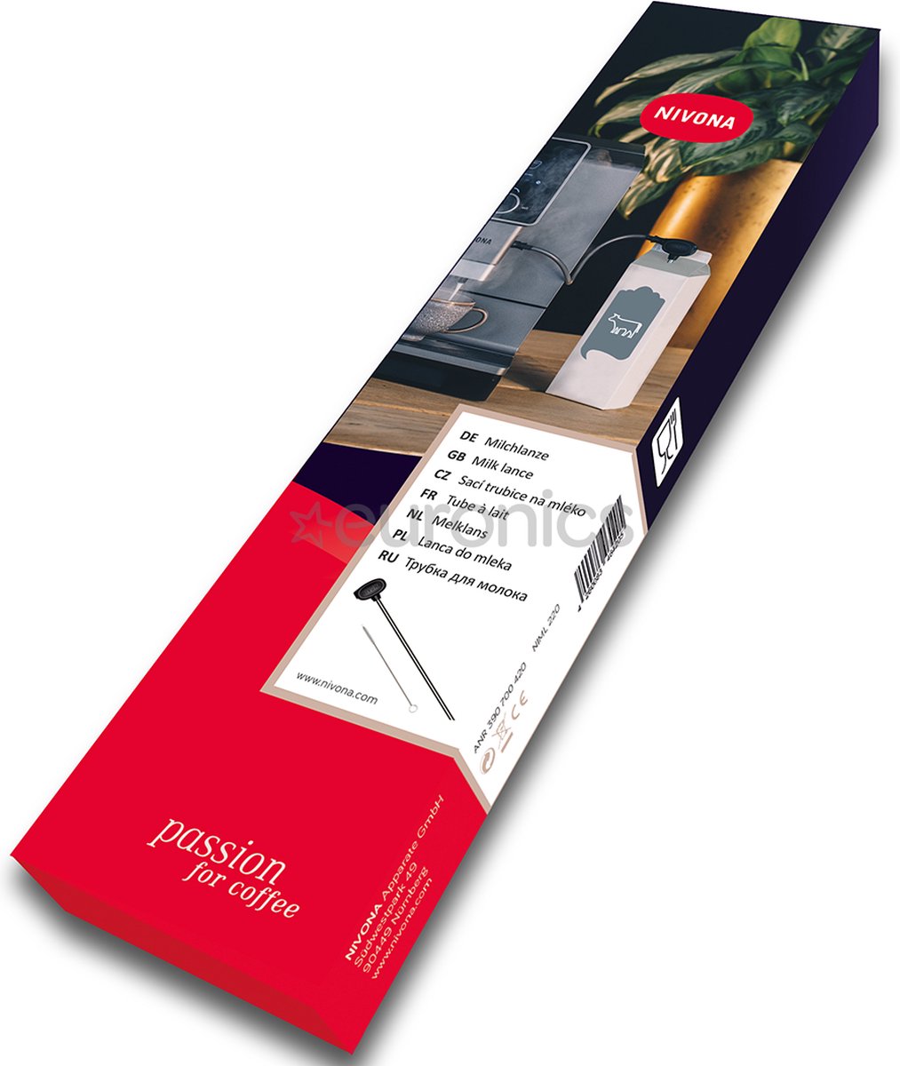Opmerkelijk eenvoudig: De NIVONA-melklans is de praktische methode om de melk direct bij de NIVONA te krijgen. Hoe? Heel eenvoudig. Zonder aanvullende slang of adapter. Simpelweg de melklans in het melkpak steken en klaar. Het melkpak kan daarna ook zonder problemen direct in de koelkast worden geplaatst. Daarnaast kan de melklans eenvoudig met het meegeleverde borsteltje en zeepwater worden gereinigd. Direct in het melkpak... lees meer over dit product