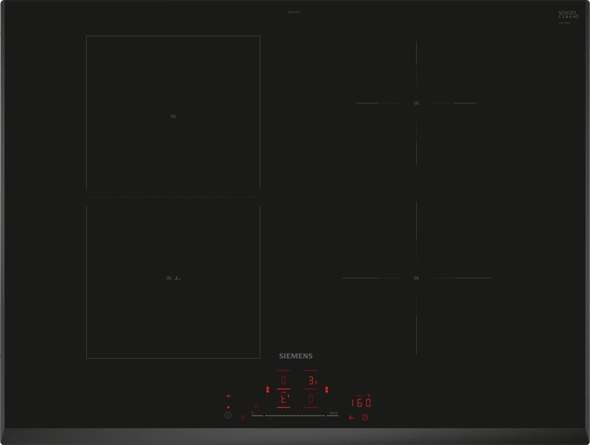 De Siemens ED751HSC1E is een moderne 70 cm. combiInductie kookplaat - voor eindeloze mogelijkheden d.m.v. Home Connect combiZone: combineer probleemloos twee inductiezones voor grote pannen. Home Connect: met de app voor Android en iOS heb je altijd en overal controle over je kookplaat. cookConnect: bedien je afzuigkap via de kookplaat. powerBoost: verhoogt het vermogen van een inductiezone met tot wel 50%. Timer met uitschak... lees meer over dit product