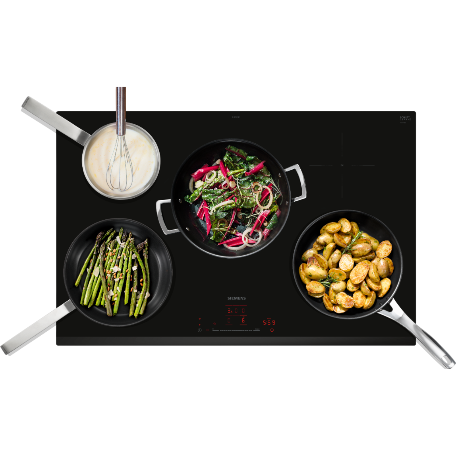 Direct warm én direct koud. Ervaar de voordelen van Siemens inductie. De warmte wordt via inductiespoelen direct naar de pannen en hun inhoud gevoerd, zonder dat de kookplaat heet wordt. De voordelen: korte opwarmtijden, hogere veiligheid en de kookplaat is veel gemakkelijker schoon te maken.