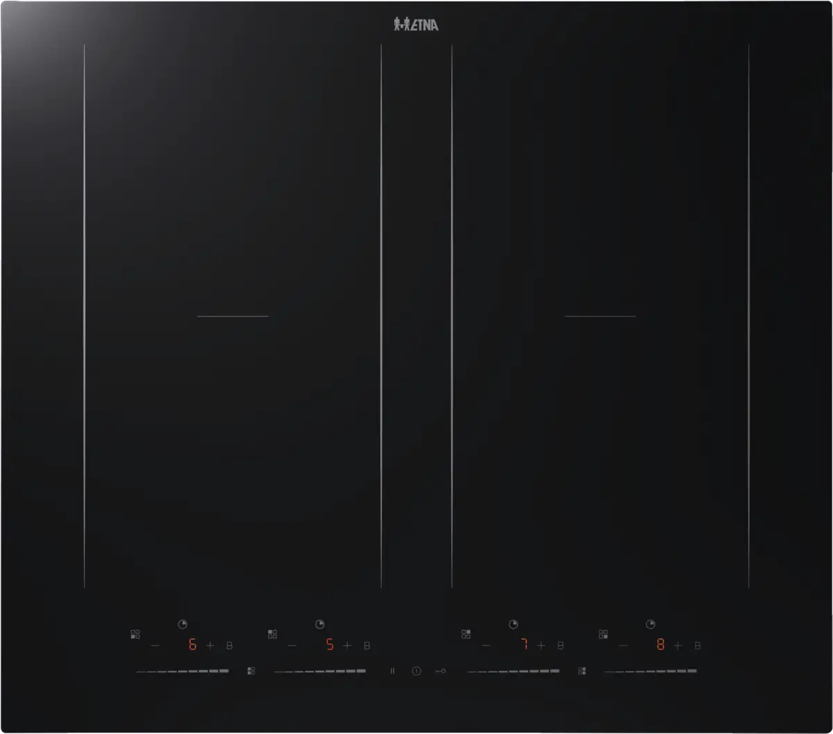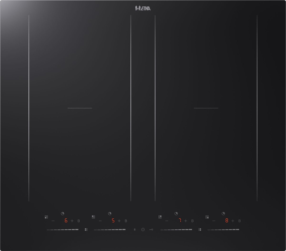De ETNA KIF5462ZT is een compacte inductiekookplaat met verrassend veel functies. Deze kookplaat heeft vier octavormige kookzones, elk met een vermogen van 3300 watt en een diameter van 21 cm. De zones aan zowel de linker- als rechterzijde zijn koppelbaar tot een extra groot kookoppervlak, ideaal voor een grillplaat of vispan. Dankzij de octavormige kookzones profiteer je van maximale werking tussen de pan en het kookoppervlak. Elke zone heeft 10 kookstanden, een boostfunctie en een timer die als kookwekker kan worden gebruikt.