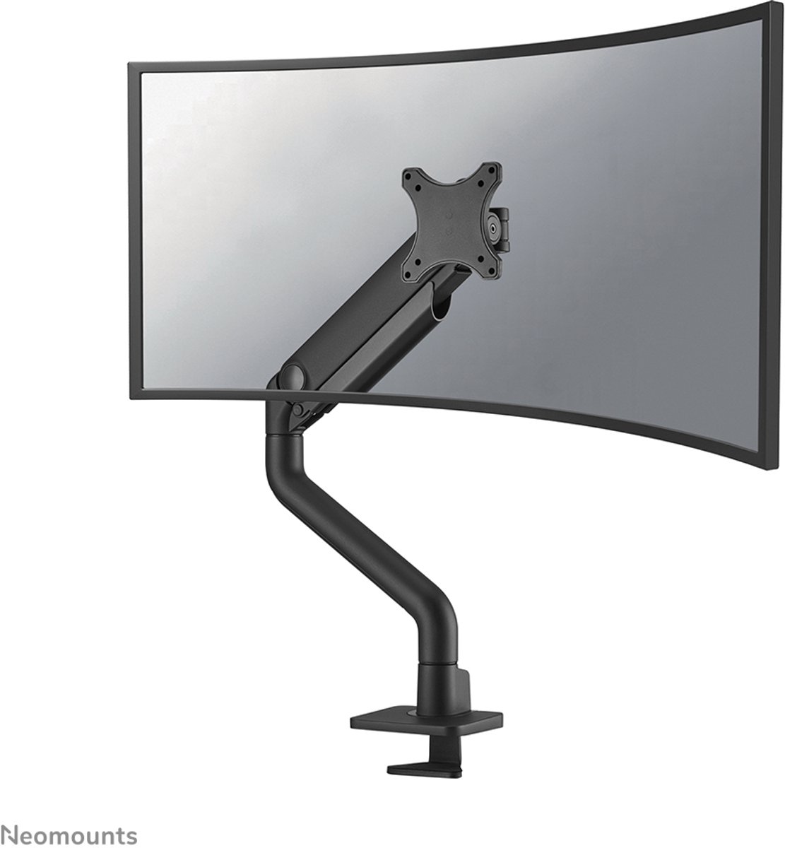 De Neomounts DS70S-950BL1 NEXT One is een full motion monitorarm voor schermen tot 49". De DS70S-950BL1 is een echte alles-in-één oplossing voor kleine tot grote schermen. De NEXT One heeft een verstevigde kop speciaal ontworpen om tevens curved ultra-wide schermen te kunnen dragen en heeft een hogere maximale gewichtscapaciteit tot 18 kg (curved 15 kg). Dankzij de veelzijdige kantel- (180°),roteer- (360°) en zwenktechnologie (180°) kan de monitorarm aangepast worden naar iedere gewenste kijkhoek om optimaal te profiteren van de mogelijkheden van het scherm. Bovendien beschikt de steun over gasgeveerde hoogteverstelling (20-52 cm) en diepteverstelling (8,8-62,5 cm) om de perfecte werkpositie te kunnen creëren. De DS70S-950BL1 is voorzien van het handige 180°-stopmechanisme dat voorkomt dat de steun de muur of het scheidingspaneel raakt, wanneer deze in de buurt ervan wordt geïnstalleerd. Het slimme kabelmanagementsysteem zorgt voor een overzichtelijke geleiding van de kabels. De zwarte VESA-platen van de NEXT One integreren stijlvol met de zwarte achterkant van je scherm. De DS70S-950BL1 is geschikt voor schermen met een VESA gatenpatroon van 75x75 of 100x100 mm. Voor afwijkende gatenpatronen heeft Neomounts diverse optionele VESA-adapterplaten in het assortiment. De monitorarm is voorzien van een Quick-release VESA-systeem en wordt geleverd met zowel een topfix bureauklem als doorvoer voor snelle en eenvoudige installatie.
